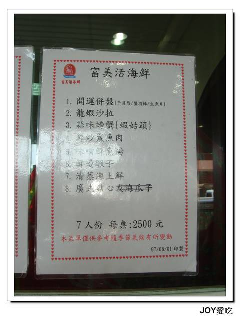 所以我們就點了一份今日7人份2500元的合菜-海鮮大餐