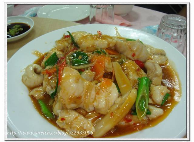 鯊魚肉,這道菜我想店家應該不是用豆腐鯊,雖然我沒有問。但是豆腐鯊在前幾年因為保育的問題已經列為禁止獵捕與食用的鯊魚類。不過吃起來口感很像呢~~不知道是何種鯊魚,但我喜歡沒有刺的魚肉,且肉質軟嫩,很適合老人與小朋友。