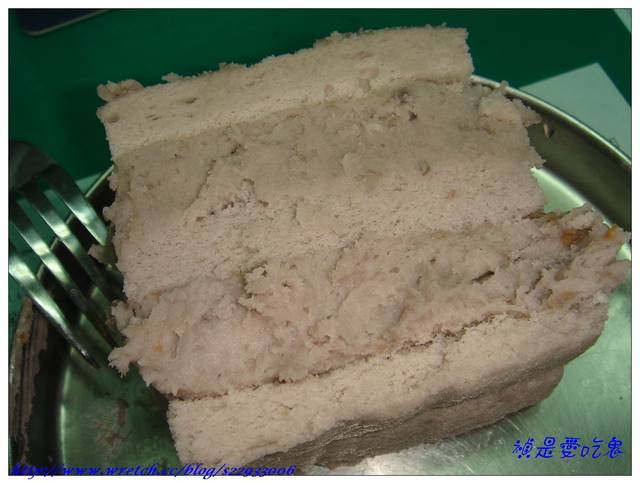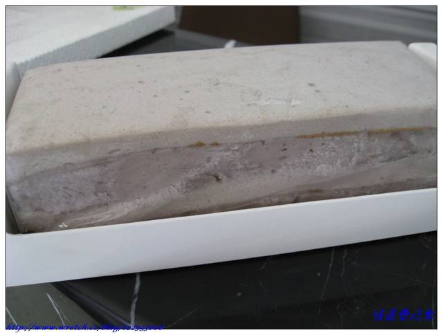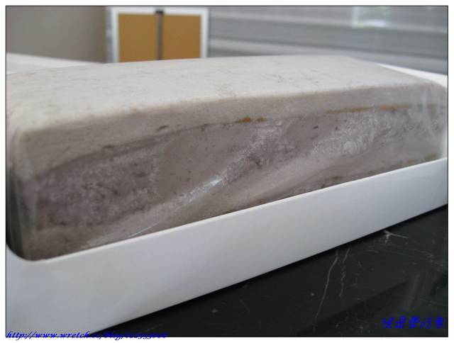 就因為他的芋泥害我的嘴饞了起來,才放入冰箱沒多久~~我的心就一直掛念著它,不管三七二十一,貪心的我狠狠給它切了一大塊。