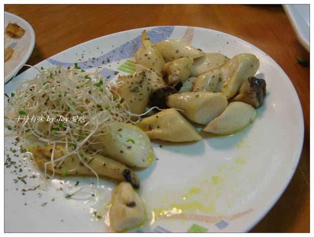 單純奶油與杏鮑菇的組合實在很衝突,大家都不太愛這道菜,味道不好。我想再沾個烤肉醬整體的口感將大大不同。