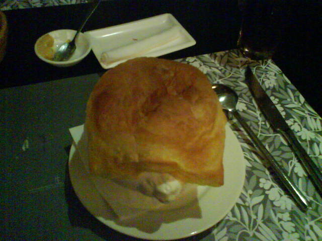 酥皮海鮮濃湯不像一般只有蘑菇,裡面加了海鮮料,沙拉到濃湯已經讓我有飽足的感覺了