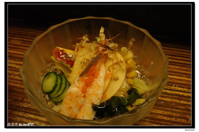 餐前的沙拉,客官您看這沙拉有蝦子和魚卵耶!日式醬汁的調味非常順口,搭配新鮮蔬菜與水果,感覺實在很好。